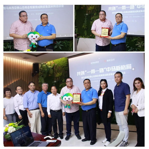 在會議最后,順成董事長粱有福作為中國陶瓷企業家代表,馬來西亞佛山總商會總會長拿督斯里葉紹作為馬來西亞商會代表,互贈紀念品,籍此表示雙方對共創“一帶一路”中馬新格局的美好祝愿。