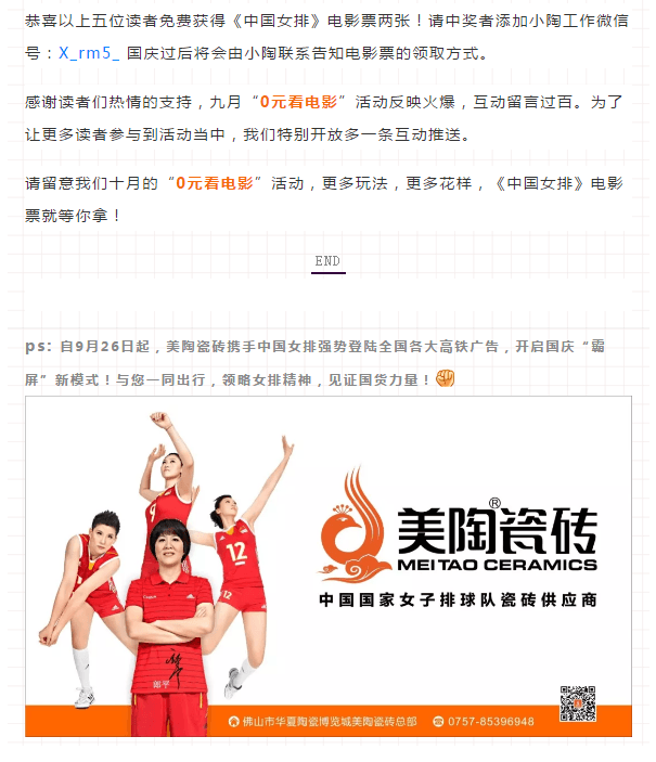 贈票|《中國女排》電影票九月中獎名單大公布!