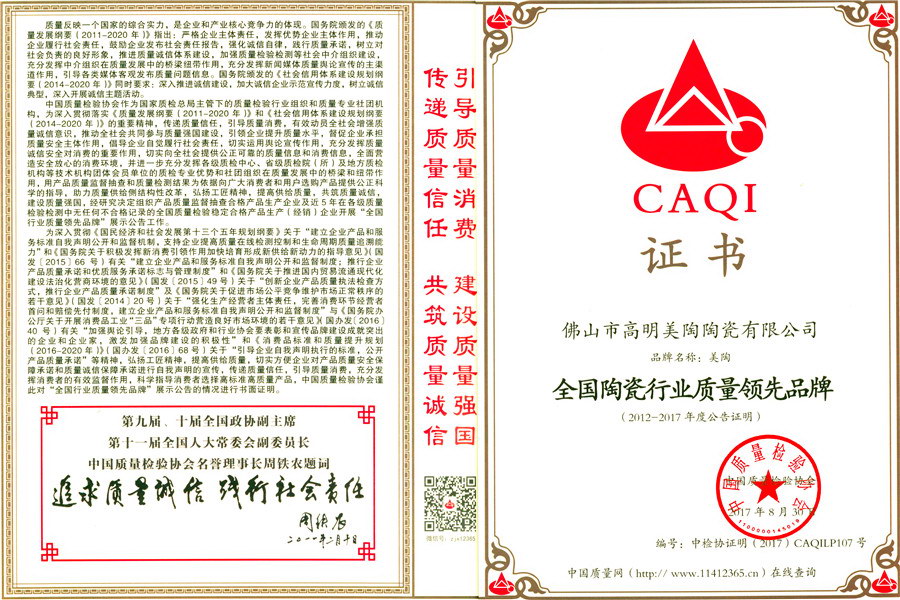 榮譽-全國陶瓷行業質量領先品牌