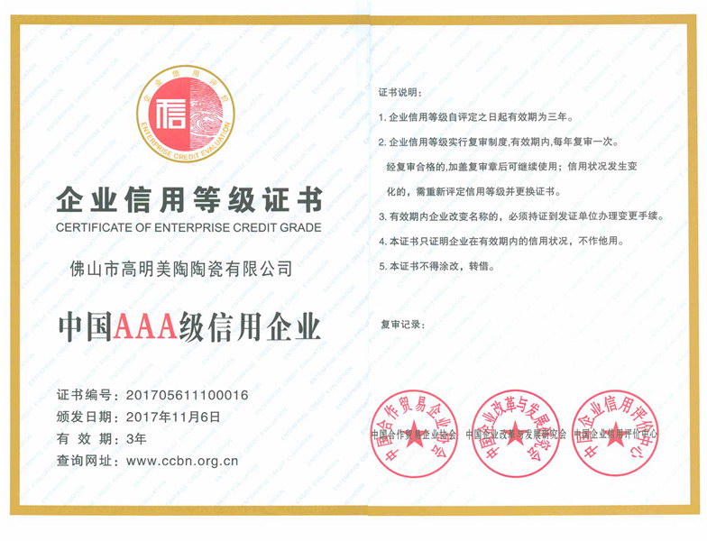 企業信用等級證書