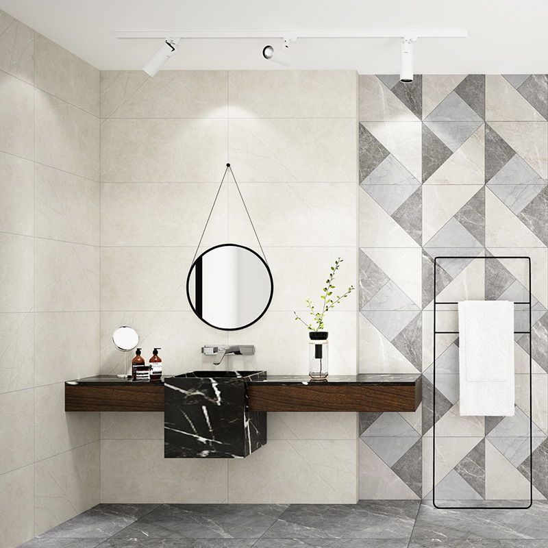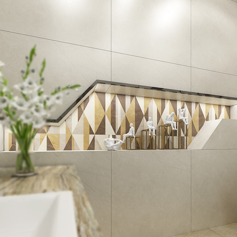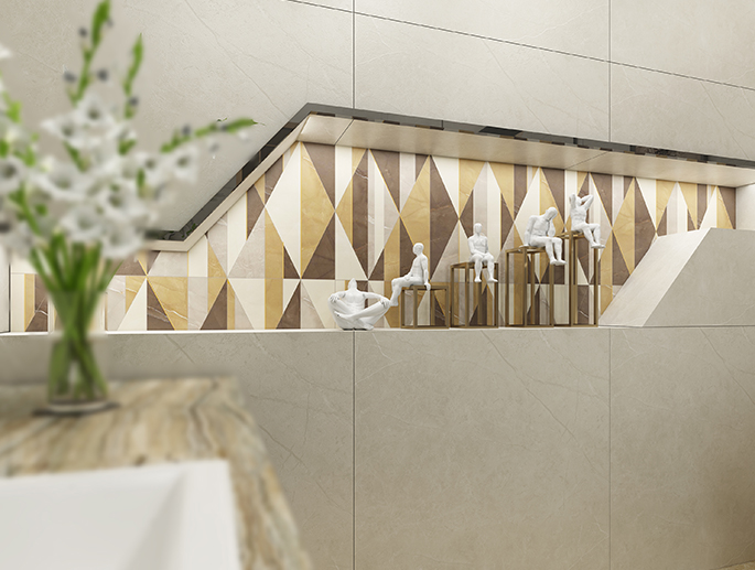 金白交融的磚面上,流轉著輕盈飄逸的花紋,優雅的色調,
